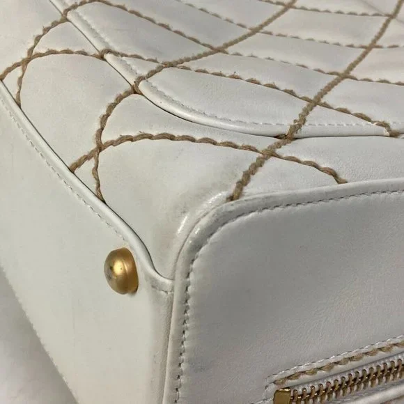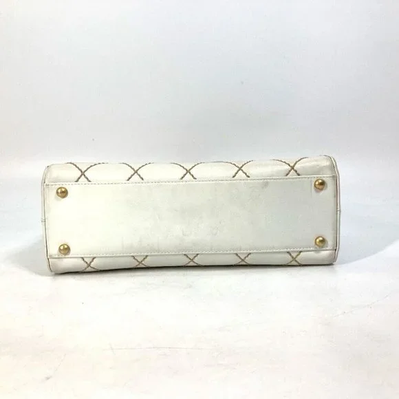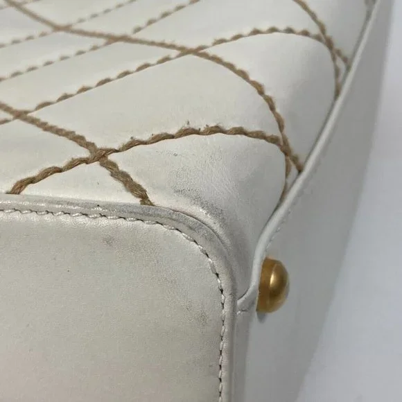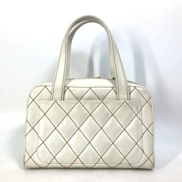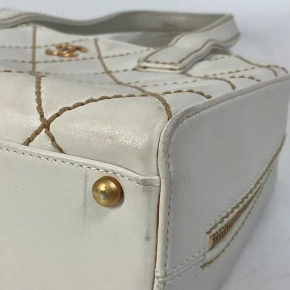 NAME:CHANEL CC CC Mark bag Wild stitch Vintage Mini Duffle Bag Shoulder Bag Hand BagSHAPE:Hand BagCode:8051***COLOR:WhiteMATERIAL:LeatherAPPROX SIZE:W10.8×H7.1×D3.9inch / W27.5cm×H18cm×D10cmListed hand measurements may have a 1-2cm difference.GENDER:Women'sSPEC:[Outside] Open pocket x[Inside] Zipper pocket x 1,Open pocket x 1ADDITIONAL ITEMS:Dust Bag , Authenticity Card , Serial seal ,ITEM RANK:Used AB RankCONDITION DETAILS:Outside:Scratches,Stain,scrapes,Bond Stains dirtInside:Scratches,scrapes,Stain,Bond Stains dirtPRODUCT INTRODUCTION:Chanel's Shoulder Bag with the popular wild stitch.